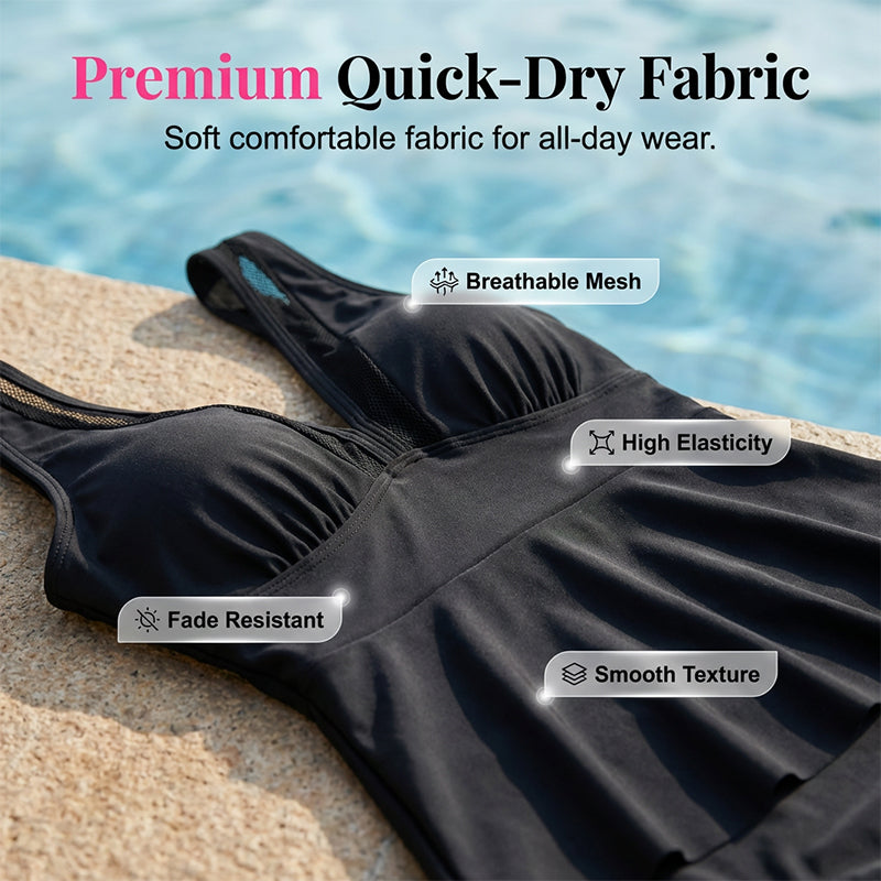 ELEGANTE DISEÑO CON ESCOTE EN V - Eleva tu colección de trajes de baño con un elegante escote en V combinado con insertos de malla transpirable. Este diseño sofisticado ofrece un equilibrio perfecto entre atractivo y cobertura segura.