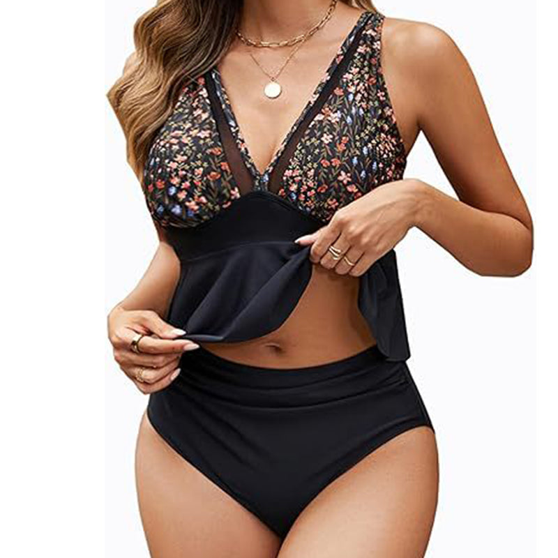 Conjunto de tankini peplum para mujer con braguita